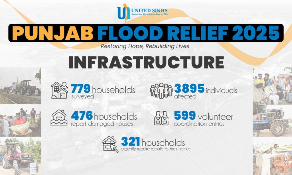 It is now just over 2 months since the devastating floods that engulfed Panjab. Following a detailed field assessment this week, our team on the ground has documented a myriad set of urgent needs across 11 flood-affected villages covering 779 households or 3,895 individuals. The findings mark a critical moment for donor intervention to restore livelihoods, rebuild homes, and safeguard the dignity of vulnerable communities. These villages were adopted by UNITED SIKHS in response to grassroot requests from concerned citizens, where long-term recovery and resilience efforts are underway. Below is a summary of key findings from the assessment conducted by our field volunteers and coordinators: