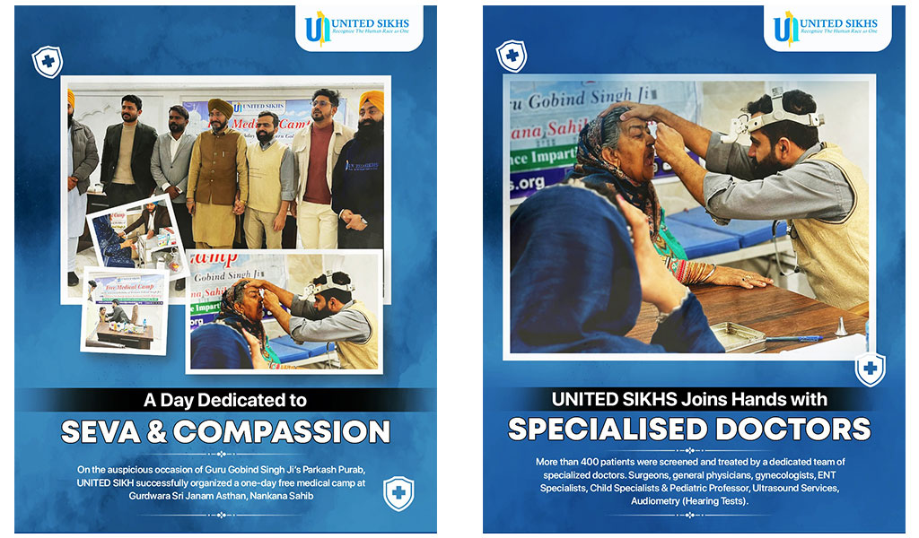 On the auspicious occasion of Guru Gobind Singh Ji’s Parkash Utsav (Gurpurab), UNITED SIKHS organized a One-Day Free Medical Camp at Gurdwara Sri Janam Asthan, Nankana Sahib, delivering vital healthcare services to more than 400 patients and reaffirming its commitment to Seva (selfless service) and community well-being.