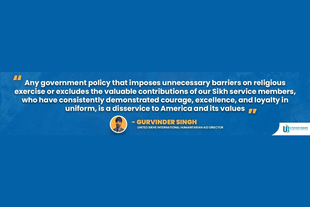 “Requiring service members to formally attest in writing that they hold sincere religious beliefs imposes an undue burden without compelling government interest. Requiring affidavits to demonstrate religious devotion is not the least restrictive method,” added Gurvinder Singh, UNITED SIKHS International Humanitarian Aid Director.